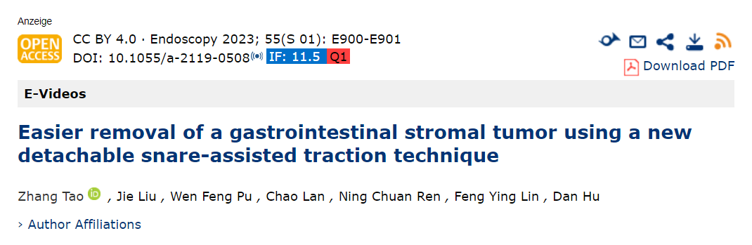 我院消化内科在早期胃肿瘤内镜下治疗方面的多项创新技术得到国际认可,在内镜顶刊上发表发表时间:2025-07-11 08:48来源:消化内科 随着内镜精查技术的普及,胃黏膜下肿瘤的检出率日益提高。面对这类起源于胃黏膜层以下的病变(如胃肠道间质瘤、平滑肌瘤、神经内分泌肿瘤等),如何实现精准、微创、高效的治疗是医学界关注的重点。首都医科大学附属北京安贞医院南充医院·南充市中心医院(简称:北京安贞医院南充医院)消化内科在科主任张涛教授带领下,勇攀技术高峰,其多项胃肿瘤内镜治疗原创技术荣登国际顶级期刊,临床疗效达到国际领先水平,为患者带来了福音。 微创利器:内镜治疗优势显著 根据《中国消化道黏膜下肿瘤内镜诊治共识(2023版)》,对于直径≤3.5cm的良性或低恶性潜能胃SMTs,内镜微创治疗(如ESE内镜黏膜下挖除术、EFTR内镜全层切除术等)相比外科手术具有显著优势:通过自然腔道操作,避免体表切口,最大程度保留胃功能;患者恢复快,住院时间短;并发症发生率低(如黏膜下挖除术穿孔风险2%-7%),且多数可内镜处理;完整切除率高达84.9%-100%,确保肿瘤根治效果。 挑战极限:原创技术破解难题 北京安贞医院南充医院消化内科团队年均完成胃肿瘤内镜手术近200例,并不断挑战技术极限。针对胃体上部、胃底等特殊部位肿瘤视野暴露难、操作风险高的世界性难题,团队开展了系列开创性研究: 2023年,北京安贞医院南充医院消化内科在消化内镜全球顶刊《Endoscopy》(影响因子11.5,Q1区)首发两项突破性技术——首创“可拆卸圈套器牵引术”解决胃体上部肿瘤术野暴露难题,同期报道全球首例“套扎辅助翻转技术”显著提升胃底肿瘤的可操作性。