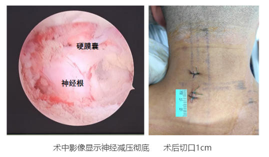 脊柱外科微创手术精准解除颈椎顽疾发表时间:2025-08-25 17:31来源:脊柱外科 日前,首都医科大学附属北京安贞医院南充医院(南充市中心医院)骨关节中心脊柱外科传来好消息:胡凌云博士团队为一名饱受颈肩疼痛伴上肢麻木疼痛困扰的患者成功实施经皮内镜下颈椎Key-hole微创手术。术后患者症状显著改善,次日就能正常下地活动,这标志着我院在脊柱微创技术领域再攀新高峰。 年轻小伙被颈椎痛缠上,保守治疗无效寻新招 患者为26岁年轻小伙,受颈肩部疼痛和左上肢麻木疼痛的问题困扰已有一年多。期间,在外尝试多种保守治疗,但效果均不理想,于是来院寻求帮助。 脊柱外科副主任胡凌云博士接诊后,结合患者的症状、体征以及影像学检查结果,明确诊断为神经根型颈椎病、颈椎间盘突出症。由于患者症状明显,保守治疗效果不佳,具备明确的手术指征。为了最大程度减少手术创伤,提升手术安全性和治疗效果,胡凌云博士团队经过综合评估,决定采用创新性的经皮全内镜下颈椎Key-hole微创手术为患者治疗。 巧开“钥匙孔”,精准解除神经压迫 Key-hole直译就是就是“钥匙孔”,象征着精准、安全且微创的手术理念。内镜下颈椎 Key-hole 手术,是在可视化脊柱内镜的辅助下,通过 1—2 个仅 1 厘米的小孔,在椎板间开设一个如同钥匙孔大小的精细通道,借助微创技术完成突出椎间盘的摘除和神经的精准减压。 术前 CT 及 MRI 检查清晰显示患者颈 6/7 椎间盘突出,对神经造成了明显压迫。在充分的术前准备和麻醉手术中心的密切配合下,胡凌云博士团队顺利为患者实施了手术。术中出血极少,神经减压非常充分。术后 CT 显示,磨开的小孔位置精准,突出的椎间盘被彻底摘除,患者相关症状得到显著改善。