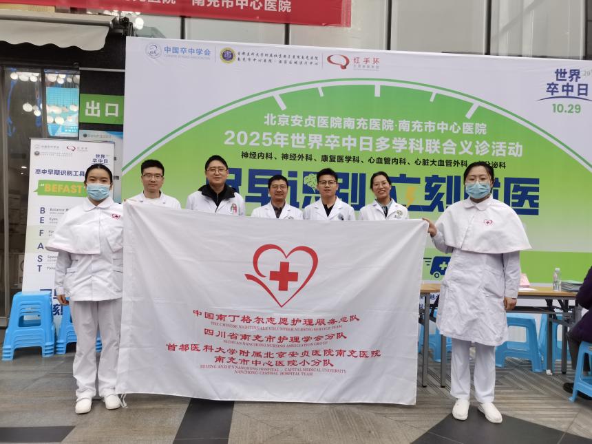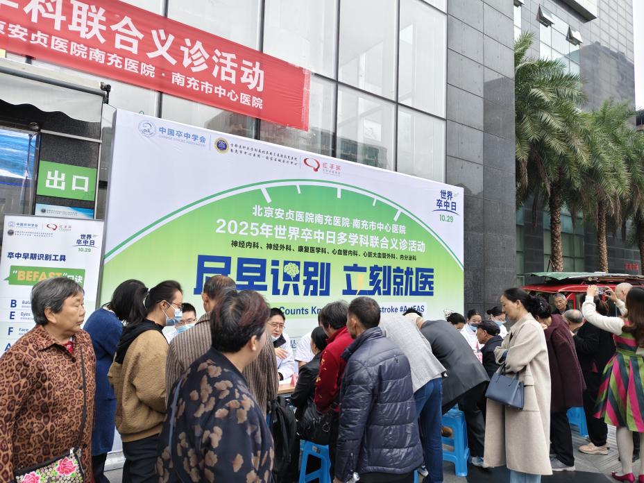 北京安贞医院南充医院举行 “世界卒中日”多学科联合义诊活动发表时间:2025-11-03 09:26来源:神经内科 10月29日是第20个“世界卒中日”,主题为“尽早识别,立刻就医”。当天上午,首都医科大学附属北京安贞医院南充医院·南充市中心医院(简称“北京安贞医院南充医院”)卒中中心在顺庆院区门诊广场举办了大型多学科联合义诊活动,将专业的健康服务送到市民身边。