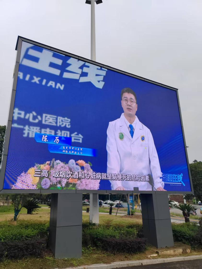 媒体联动,延伸科普 为了进一步强化“尽早识别”的宣传效果,北京安贞医院南充医院多个大型电子屏幕也持续滚动播放由神经内科主任季一飞和副主任陈历录制的电视台卒中专题节目。权威专家通过大众媒体,将复杂的医学知识转化为通俗易懂的语言,深入浅出地讲解卒中的早期征兆、家庭急救要点及预防策略,吸引了众多候诊市民驻足观看。这种“线下义诊+线上科普”相结合的方式,构建了立体的健康宣教网络,让专业的医学知识突破了时空限制,触达了更广泛的人群,获得了市民的一致好评。