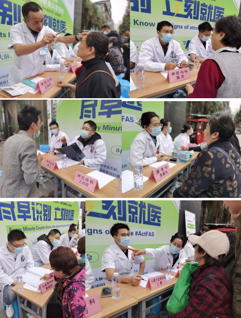 清晨微风中,许多市民早早便来到现场排队等候,足见大家对卒中的高度关注。在近两个小时的活动中,来自神经内科、神经外科、康复医学科、心血管内科、心脏大血管外科等多个科室的资深专家组成的义诊团队以专业的医术和温暖的关怀,为数百名市民答疑解惑,提供了零距离的优质医疗服务。