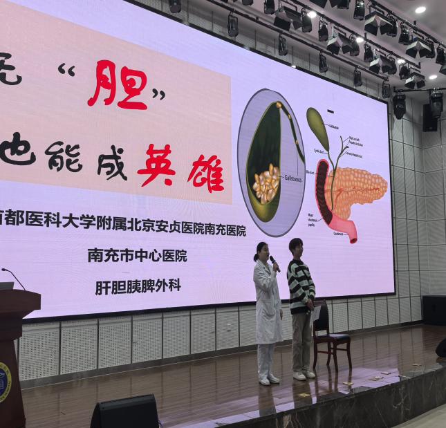 本次科普大讲堂聚焦临床常见健康问题,精选三大热门主题,邀请各科室专业护理人员进行分享。 肝胆胰脾外科团队以 “无胆也能成英雄” 为题,用通俗的语言讲解了胆囊切除后的饮食调理、生活注意事项等关键知识,打破了患者对 “无胆生活” 的顾虑。